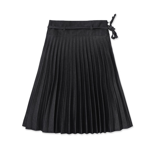 Lanyard Pleated Denim Skirt
