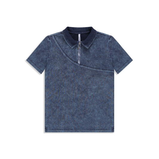 Printed polo shirt W/ zipper