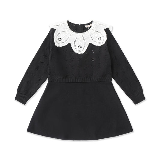 Pointelle Collar Dress – Girls' Shabbos Knit Dress